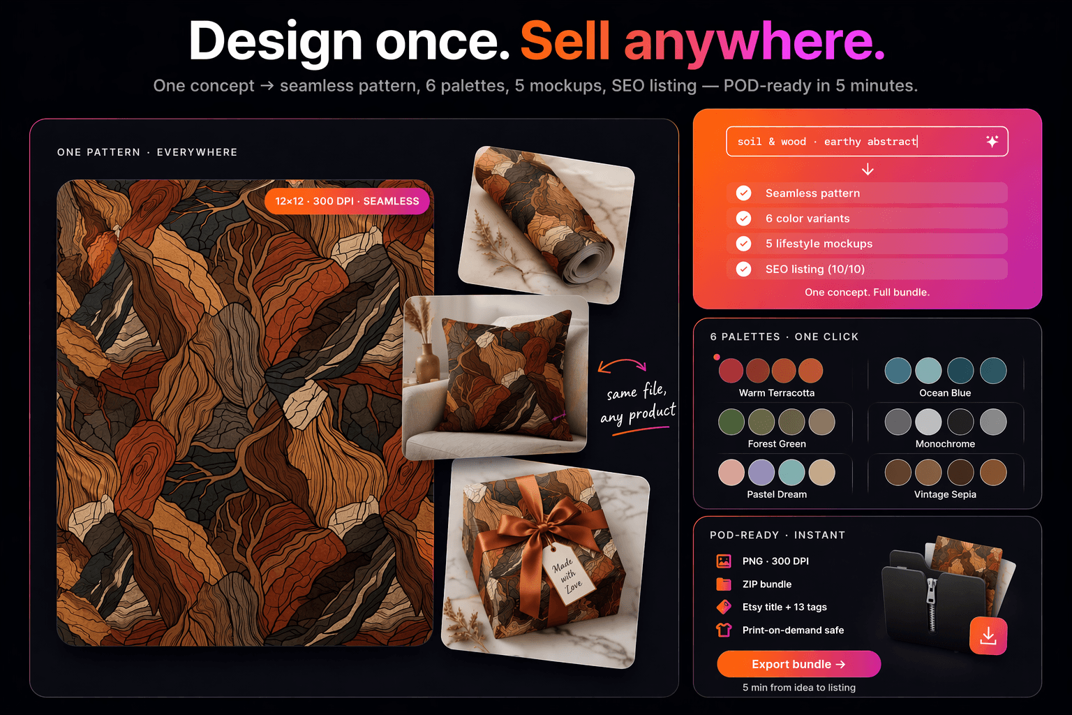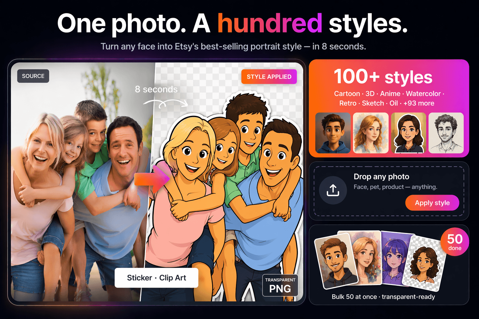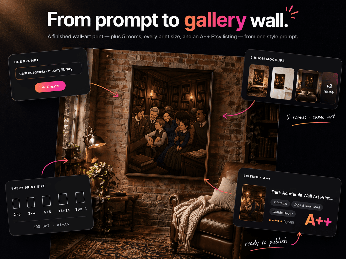 Produce trending, print-ready wall-art collections with AI in seconds.