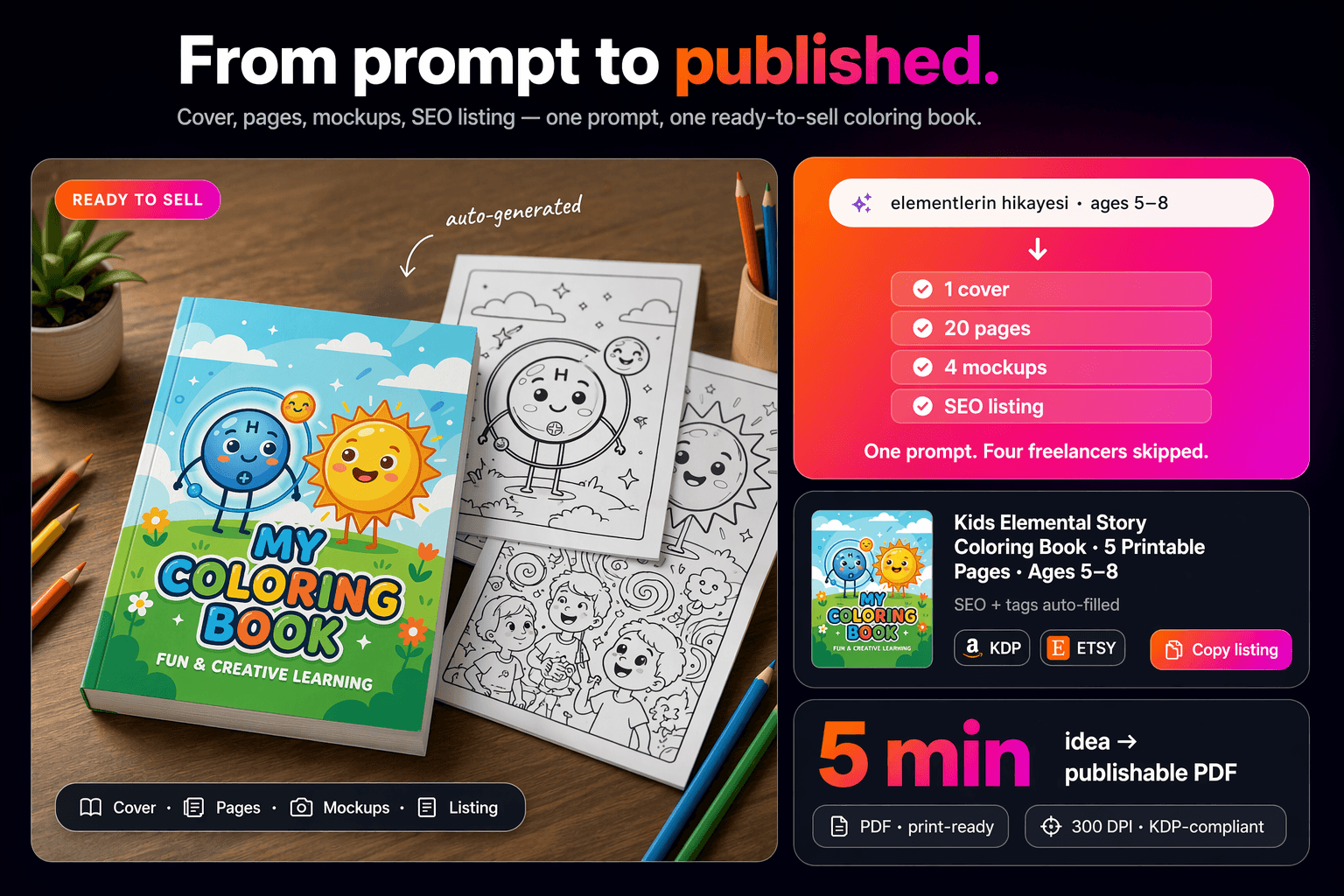 Create intricate, highly scalable coloring pages instantly.