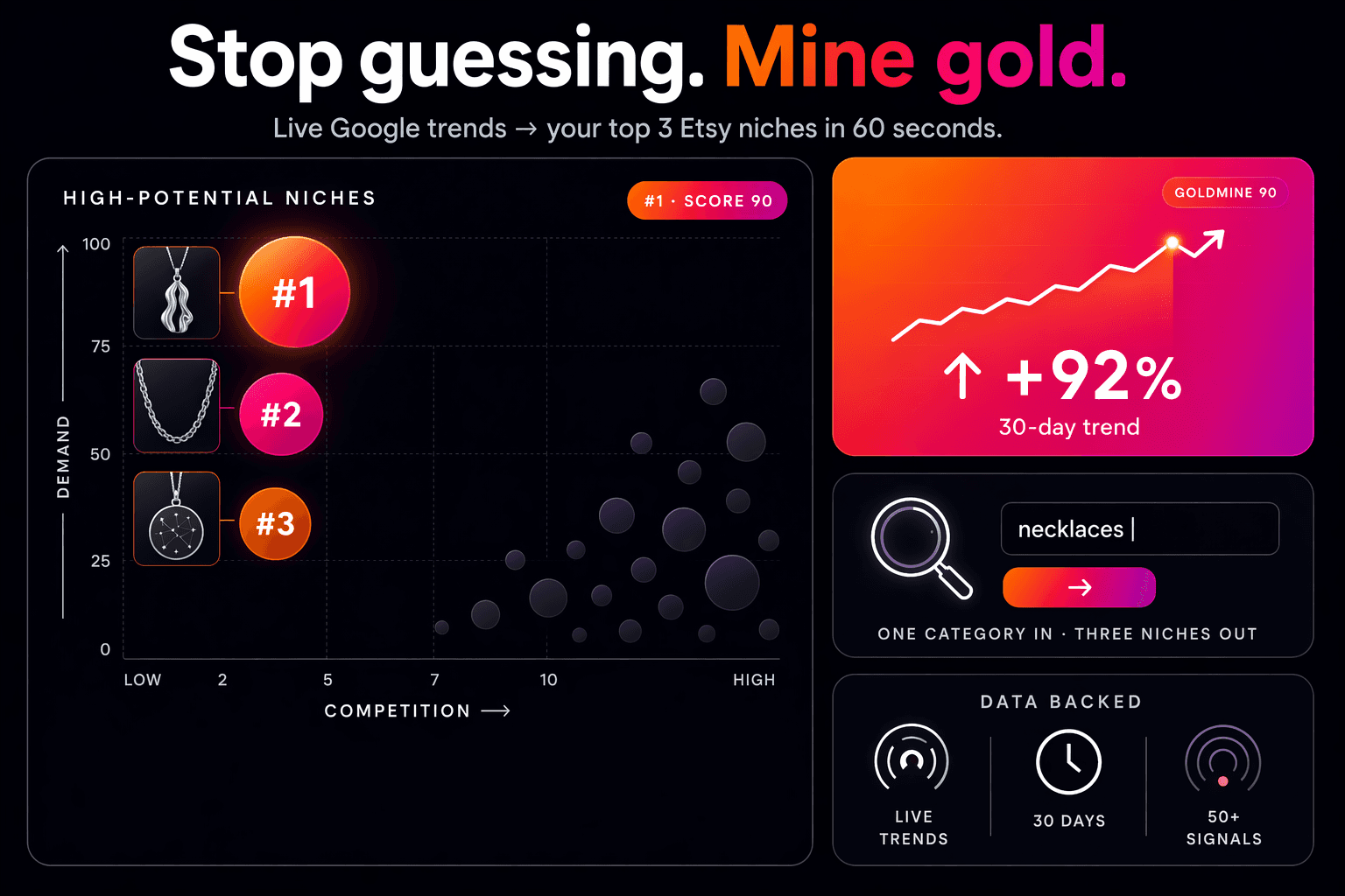 Optimsy Neural Scanner identifies high-demand and low-supply whitespace using direct Etsy API signals.
